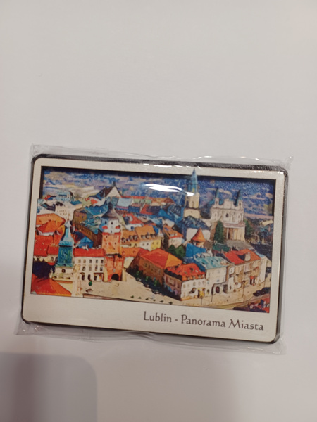 Magnes drewniany Panorama miasta - wycięcie akwarela